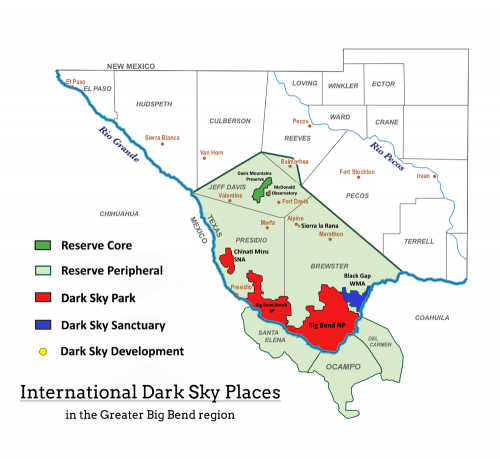 FORT DAVIS, Texas -- This week, McDonald Observatory and numerous partners join in celebrating the first anniversary of the Greater Big Bend International Dark Sky Reserve. Covering more than 15,000 square miles in Texas and Mexico, the Reserve is the largest dark sky place in the world certified by the International Dark-Sky Association (IDA).
